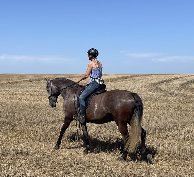 Zeer lieve Lusitano-ruin met goede papieren te koop. 4 jaar oud, geboren in Duitsland, stokmaat ca. 1,56 m. Opleidingsniveau: grondwerk volgens academische principes, kent de manege en het terrein. Karakter: vriendelijk en open, geduldig, vergeeft ook eens een fout. Geschikt voor Working Equitation, recreatief rijden en mennen. Hij wordt hier verder opgeleid.