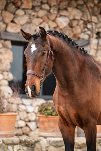Piękny wysoki Lusitano. Shakur ma uroczy, słodki charakter. Wykazuje się świetnym kłusem pod górę, a jego chód jest elastyczny i poprawny oraz ma piękny over-track. Nadawałby się do ujeżdżenia