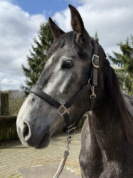 Met pijn in het hart geven wij onze Lusitano-Cruzado ruinier op, omdat onze Tinker hem helaas helemaal niet accepteert en we hem niet kunnen scheiden in de box. Hij is 4 jaar oud en heeft momenteel een stokmaat van ongeveer 161 cm (volwassen ongeveer tot 165 cm). De tanden zijn recent gecontroleerd en een klinisch gezondheidsrapport is al aanwezig. Hij is al goed bereden – zowel in de bak als buitenritten. Hij gaat braaf alleen op pad en heeft ook al kleine sprongen zelfverzekerd overwonnen. Door zijn geweldige, onbevreesde karakter is hij zeker een veelbelovend paard voor jonge ruiters. Hij staat momenteel onder het zadel, toont zich daarbij zeer aangenaam om te rijden, fijn aan de hulp en altijd braaf in de omgang. Hij is verkeersveilig en blijft ook in nieuwe situaties kalm en zelfverzekerd. Daarnaast loopt hij zeer goed op stem en werkt betrouwbaar aan de longe. Bodenarbeid doet hij uitstekend – hij toont zich daarbij eerder als een “streber” en is altijd gemotiveerd. Wat vooral opvalt, is zijn uitzonderlijke karakter: Hij is nervensterk, onbevreesd, altijd vriendelijk, werkbereid en bijzonder mensgericht. Hij is geen “klevertje”, kan probleemloos alleen staan en blijft ontspannen in de stal. Momenteel staat hij in een open stal. Hij wordt regelmatig door de hoefsmid bekeken en loopt momenteel met ijzers voor, omdat ons terrein erg rotsachtig is. Hij is momenteel nog geen beginners- of kinderpaard, maar met verdere goede opleiding zal hij dat zeker worden. Proefritten alleen bij serieuze interesse (€50), wordt bij aankoop uiteraard verrekend. Wij verzoeken geïnteresseerden geen “video-verzamelaars” te zijn. We geven de voorkeur aan eerst een persoonlijk gesprek – bij serieuze interesse sturen wij graag meer foto’s en rij- en longeervideo’s toe. Een uitgebreide gezondheidskeuring kan op verzoek en kostenverdeling uiteraard worden uitgevoerd. Let op: Alle informatie is gebaseerd op onze persoonlijke indrukken en ervaringen met het paard en betreft geen gegarandeerde eigenschappen.