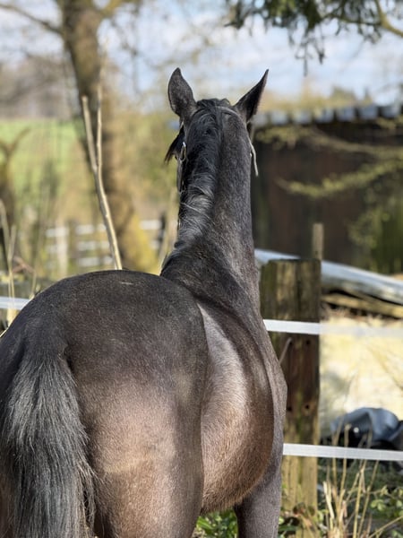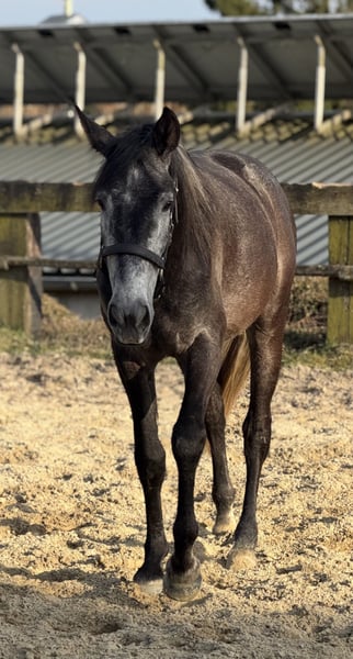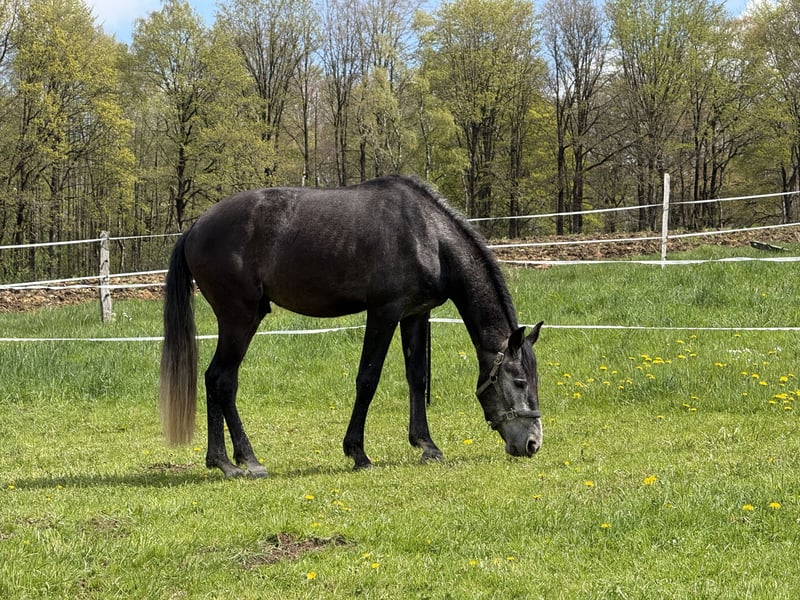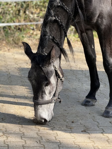 Schweren Herzens geben wir unseren Lusitano-Cruzado Wallach ab, da unser Tinker ihn leider überhaupt nicht akzeptiert und wir in der Laufbox nicht trennen können. Er ist 4 Jahre alt und hat aktuell ein Stockmaß von ca. 161 cm (ausgewachsen etwa bis 165 cm). Die Zähne wurden frisch gemacht, eine klinische AKU ist bereits vorhanden. Er ist bereits gut angeritten – sowohl auf dem Viereck als auch im Gelände. Er geht brav alleine ins Gelände und hat auch schon kleine Sprünge souverän gemeistert. Durch seine tolle, unerschrockene Art ist er sicherlich ein vielversprechendes Juniorenpferd. Aktuell befindet er sich in Beritt, zeigt sich dabei sehr angenehm zu reiten, fein an den Hilfen und jederzeit brav im Umgang. Er ist verkehrssicher und bleibt auch in neuen Situationen ruhig und souverän. Außerdem läuft er sehr gut auf Stimme und arbeitet zuverlässig an der Longe. Bodenarbeit macht er hervorragend – er zeigt sich dabei eher als „Streber“ und ist stets motiviert. Besonders hervorzuheben ist sein außergewöhnlicher Charakter: Er zeigt sich nervenstark, unerschrocken, stets freundlich, arbeitsbereit und besonders menschenbezogen. Er ist kein „Kleber“, kann problemlos alleine stehen und bleibt entspannt im Stall. Derzeit steht er im Offenstall. Er wird regelmäßig dem Schmied vorgestellt und läuft aktuell vorne auf Eisen, da unser Gelände sehr steinig ist. Er ist aktuell noch kein Anfänger- oder Kinderpferd, wird dies aber mit weiterer guter Ausbildung sicherlich werden. Probereiten nur bei ernsthaftem Interesse (50 €), wird beim Kauf selbstverständlich angerechnet. Reine „Videosammler“ bitten wir von Anfragen abzusehen. Wir bevorzugen zunächst ein persönliches Gespräch – bei ernsthaftem Interesse senden wir gerne weitere Bilder sowie Frei- und Reitvideos zu. Eine große AKU kann auf Wunsch und Kostenübernahme selbstverständlich durchgeführt werden. Hinweis: Alle Angaben beruhen auf unseren persönlichen Eindrücken und Erfahrungen mit dem Pferd und stellen keine zugesicherten Eigenschaften dar.