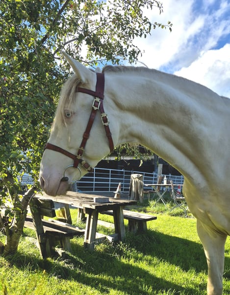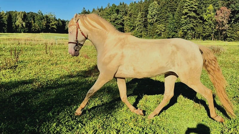 Zum Verkauf steht ein außergewöhnlich hübscher vierjähriger Lusitano in Sonderfarbe, der sowohl durch sein edles Erscheinungsbild als auch durch seinen Charakter überzeugt. Der junge Wallach zeigt sich in allen Situationen absolut unerschrocken und nervenstark, wodurch er ein verlässlicher Partner im täglichen Umgang ist. Seine sehr guten Grundgangarten lassen bereits jetzt großes Potenzial für die weitere Ausbildung erkennen. Mit seinem taktreinen Schritt, dem elastischen Trab und dem kraftvollen, bergauf gesprungenen Galopp bringt er beste Voraussetzungen für die Dressur, die klassische Barockreiterei oder den ambitionierten Freizeitreiter mit. Er ist altersgemäß ausgebildet, stets freundlich im Umgang und bereit, sich weiter zu entwickeln. Ein Pferd, das durch seine Ausstrahlung und Rittigkeit gleichermaßen begeistert und für fördernde Hände ein echter Rohdiamant ist. Gerne können wir Ihnen Videos zukommen lassen bei ernsthafter Interesse!