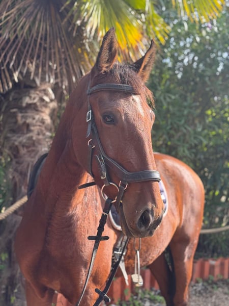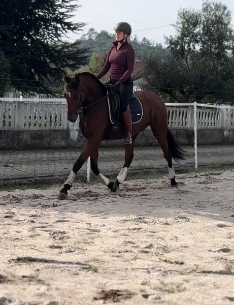🌟 ROMEU 🌟 Versatile Lusitano gelding with quality for Working Equitation and more ROMEY Breed: Lusitano Sex: Gelding Year of Birth: 2021 Color: Brown Height: approximately 1.60 m (likely to grow another 1-2 centimeters) ⸻ ROMEY is a modern, talented all-rounder who impresses with his versatility, rideability, and excellent pedigree. A horse that will excel both in sport and as a reliable partner in everyday riding. ⸻ 🏇 Training & Rideability: ✔️ Confidently ridden in walk, trot, and canter ✔️ Lateral movements already established ✔️ Very comfortable and light to ride ✔️ Easy, well-balanced canter ✔️ Good, clear basic gaits ✔️ Well-behaved on rides outside ✔️ Good jump – fun over obstacles ✔️ Familiar with Working Equitation obstacles ➡️ A true all-rounder for riders who love variety. ⸻ 🎯 Possible uses: 🔹 Working Equitation 🔹 Classical dressage training 🔹 Leisure & trail riding 🔹 Versatile further training potential ➡️ An all-rounder with strong nerves ⸻ 🧬 Pedigree: ✨ Mother: NUVEM CASTANHA • Licensed with over 70 points • Represents quality, rideability, and correct conformation ✨ Father: PIAFE • Proven stallion with around 50 offspring • Known for character, willingness to perform, and good movement ⸻ 💎 Character: Romeu impresses with: 🤍 Pleasant, cooperative nature 🧠 Quick comprehension 🔥 Motivation combined with strong nerves ➡️ A horse that provides confidence and joy to its rider. ⸻ 🌟 Summary: ROMEY is an honest, talented, and versatile horse with: ✅ Excellent pedigree ✅ Solid training ✅ Comfortable rideability ✅ Potential for Working Equitation and more ⸻ 📞 Contact & Viewing ROMEY can be visited and tried by appointment. I look forward to serious inquiries and am happy to take the time for a personal conversation.