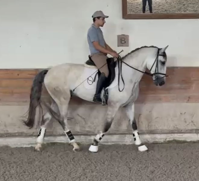 ✨RIVOLI DE SENA✨ Junger Lusitano mit Grand Prix Anlagen und Top-Abstammung, beherrscht bereits Fliegende Wechsel, Piaffe, Versammlung ein außergewöhnliches Talent RIVOLI DE SENA Merkmale: - Rasse: Lusitano - Geschlecht: Wallach - Geburtsjahr: 2021 - Farbe: Schimmel - Stockmaß: 1,65 m ⸻ Mit RIVOLI DE SENA steht ein beeindruckender Lusitano-Wallach zum Verkauf, der bereits in jungen Jahren durch seine hohe Versammlungsfähigkeit, Rittigkeit und außergewöhnliche Lernbereitschaft überzeugt. Ein Pferd mit echtem Sportpotenzial, das bereits jetzt Lektionen zeigt, die weit über seinem Alter liegen – dabei jedoch stets klar im Kopf und angenehm zu reiten bleibt. ⸻ 🧬 Hochwertige Abstammung: ✨ Vater: HOSTIL DE SENA • gekört mit 70,5 Punkten • abstammend von HOSTIL (76 Punkte) • bekannt für Qualität, Ausdruck und Versammlungsfähigkeit ✨ Mutter: ESPRELA DE SENA • gekört mit 70,5 Punkten ➡️ Eine hochinteressante Verpaarung, die Sportlichkeit, Rittigkeit und Talent für höhere Lektionen vereint. ⸻ 🎓 Ausbildungsstand: RIVOLI DE SENA ist für sein Alter bereits serh weit gefördert und zeigt: • fliegende Galoppwechsel • erste Ansätze in der Piaffe • sehr gute Versammlungsfähigkeit • Pirouetten • insgesamt hohe Arbeitsbereitschaft und Talent Alles wird dabei altersgerecht und korrekt aufgebaut, ohne ihn zu überfordern. Er kennt zudem: • Reiten auf dem Außenplatz • verschiedene Umgebungen • Working Equitation Hindernisse ➡️ Ein Pferd mit außergewöhnlicher Lernkurve und großem Entwicklungspotenzial. ⸻ 🐎 Typ & Bewegung: • moderner, harmonischer Lusitano-Typ • kraftvolle Hinterhand • gute Balance und Tragkraft • ausdrucksstarke Bewegungen ➡️ Ein Pferd mit echten Anlagen für höhere Dressurlektionen. ⸻ 🧠 Charakter: • klar im Kopf • motiviert und arbeitswillig • angenehm zu reiten • kooperativ und lernbereit ➡️ Trotz seines Talents bleibt er ehrlich und gut händelbar. ⸻ 🩺 Gesundheit: • Röntgenbilder vorhanden – ohne Befund ⸻ 🎯 Für wen ist RIVOLI DE SENA geeignet? • ambitionierte Dressurreiter • Working Equitation Reiter • Reiter mit Blick auf höhere Klassen • Menschen, die ein Pferd mit echtem Potenzial suchen ⸻ ⭐ Fazit: RIVOLI DE SENA überzeugt durch: ✔ sehr weit geförderte Ausbildung für sein Alter ✔ Talent für Piaffe, Wechsel & Versammlung ✔ hochwertige Abstammung ✔ klare Rittigkeit ✔ vielseitige Einsetzbarkeit ➡️ Ein junger Lusitano mit echten Grand-Prix-Anlagen und großem Zukunftspotenzial. ⸻ 📞 Kontakt & Besichtigung RIVOLI DE SENA kann nach Vereinbarung besichtigt und probegeritten werden. Ich freue mich auf ernsthafte Anfragen und nehme mir gerne Zeit für ein persönliches Gespräch.