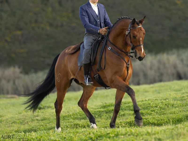 Dieser attraktive Lusitano, geboren im Jahr 2020 und mit einer ungefähren Stockmaß von 165 cm, stellt eine hervorragende Gelegenheit für Reiter dar, die ein vielseitiges, ausgeglichenes Pferd mit außergewöhnlichem Charakter suchen. Es handelt sich um einen Wallach, der derzeit sicher auf Dressurniveau 2–3 gearbeitet wird und eine solide Grundausbildung sowie ein gutes Verständnis der Arbeit unter dem Sattel zeigt. In seinen Bewegungen überzeugt er durch seine natürliche Balance, eine positive Arbeitseinstellung und sehr gute Energie Eigenschaften, die sowohl im Sport als auch im täglichen Reiten sehr geschätzt werden. Seine Grundgangarten sind korrekt und funktional, sodass der Reiter bequem und sicher mit ihm arbeiten kann, während sein Potenzial in der klassischen Dressur weiterentwickelt wird. Einer der bemerkenswertesten Aspekte dieses Pferdes ist zweifellos sein außergewöhnlicher Charakter. Trotz seiner Energie und Präsenz verfügt er über ein ruhiges und kooperatives Wesen, was ihn zu einem sehr sicheren und angenehmen Reitpartner macht. Tatsächlich wird er derzeit von einem 13-jährigen Mädchen geritten, das ihn problemlos arbeitet und reitet, was seine Rittigkeit, mentale Ausgeglichenheit und Zuverlässigkeit deutlich unterstreicht. Diese Kombination aus Sensibilität, Energie und Gelassenheit macht ihn zu einer idealen Wahl sowohl für Reiter, die sich in der Dressur weiterentwickeln möchten, als auch für diejenigen, die ein zuverlässiges Pferd zum Genießen suchen. Darüber hinaus ist das Pferd piroplasmose-negativ, ein besonders geschätzter Faktor für internationale Käufer. Derzeit befindet er sich in Portugal und kann von interessierten Reitern ausprobiert werden, die einen Lusitano mit guter Ausbildungsbasis, ausgezeichnetem Charakter und großem Zukunftspotenzial suchen.