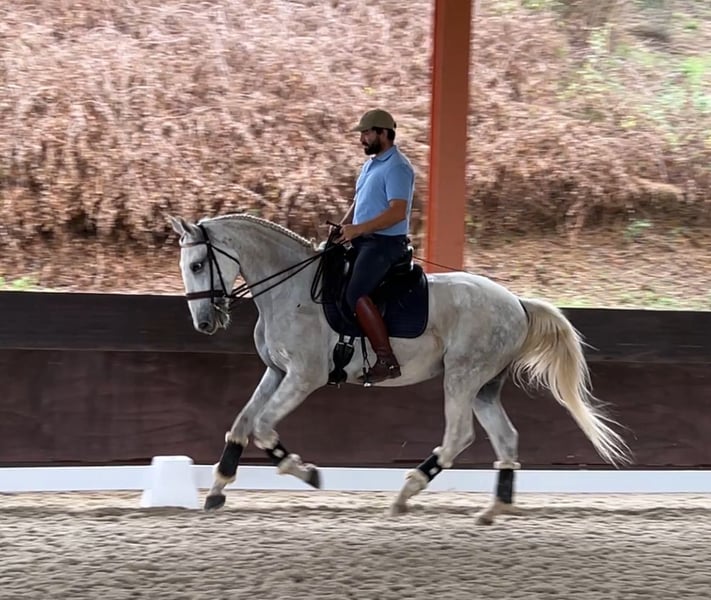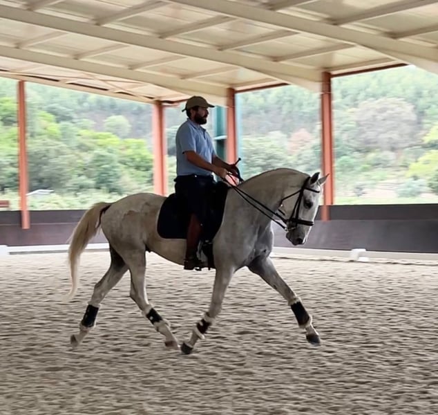 Stunning Lusitano gelding with top lineage and great potential QUIXOTE Features: - Breed: Lusitano - Sex: Gelding - Year of Birth: 2020 - Color: Grey (Dappled) - Height: 16.1 hh ⸻ ✨ Pedigree that speaks for itself QUIXOTE comes from top lines around the renowned ZAIRE, with numerous recommended and premium stallions and mares in his pedigree. Notably: 🌟 Dam UNICA SS – an impressive 81 points! A clear testament to excellent conformation and rideability. ⸻ 🧠 Character & Temperament QUIXOTE impresses with a very kind, balanced, and people-oriented nature. He loves attention, enjoys being in the paddock, and is absolutely straightforward in daily handling. He has already been to Golegã, where he remained confident and calm. ⸻ 🏇 Training Level A young gelding with a solid foundation and great talent for the future: ✔ Lateral movements ✔ Walk-trot and trot-canter transitions ✔ Beginning flying changes ✔ Supple, elastic, and responsive to aids He is free of Piroplasmosis and thus ideally prepared for international competition. ⸻ 💫 A promising young horse not to be overlooked QUIXOTE combines top genetics, excellent character, and significant talent – perfect for ambitious riders seeking a horse with potential for Working Equitation, dressage, or serious leisure riding. ⸻ 📞 Contact & Viewing QUIXOTE can be viewed by appointment. I look forward to serious inquiries and am happy to take the time for a personal conversation.