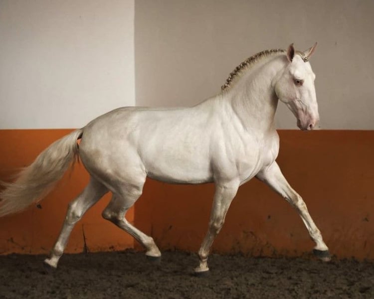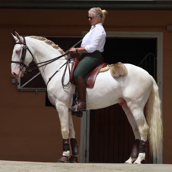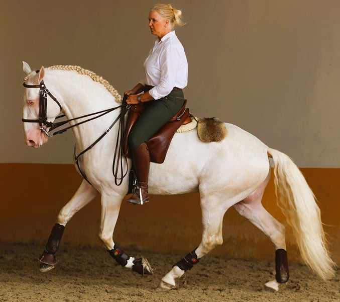 7 Jarige Lusitano ruin te koop Cremello met blauwe ogen. Is geschikt voor dressuur & Working Equitation. Kan ook springen. Looplustig paard met een fantastische galop. Te bezichtigen regio Amsterdam.