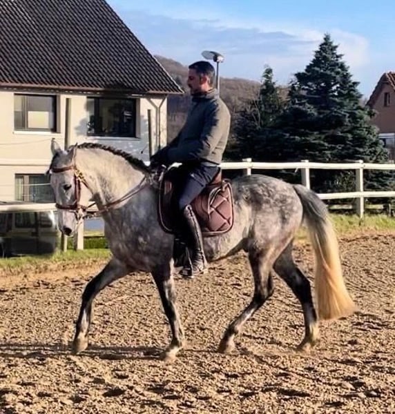 Oreo est un hongre Lusitano/Cross d'environ 8 ans, mesurant environ 1,57 m, actuellement en formation professionnelle au centre d’équitation classique d’Auetal. Oreo est un cheval vif, doté d’un potentiel pour la dressage classique ainsi que pour la Working Equitation. Sa force réside dans son trot, ce qui en ferait un excellent cheval de travail. Il est actuellement en cours de travail continu et de formation, maîtrisant déjà très bien les exercices de trail de la Working Equitation. 🔹 Ce que Oreo apporte : * Sensible et fin à monter * Motivé et apte à apprendre * En formation professionnelle en ce moment * Adapté à la dressage classique et à la Working Equitation * Habitué au box avec paddock ainsi qu’au paddock en liberté * Sociable et bien intégré socialement 🔹 Pour qui il est adapté : Oreo n’est pas un cheval pour débutants. Il recherche un cavalier expérimenté, équilibré, avec une aide fine, qui aime continuer à développer un cheval sensible et vif. Idéal pour des cavaliers de loisir ambitieux ou des cavaliers passionnés par la Working Equitation. 🔹 Autres informations : Une séance d’essai et une rencontre pour faire connaissance sont possibles sur rendez-vous. Une poursuite de sa formation peut être envisagée si intéressé. 💰 Prix : 11 000 € VB – prix négociable 📞 0172 95 59 005