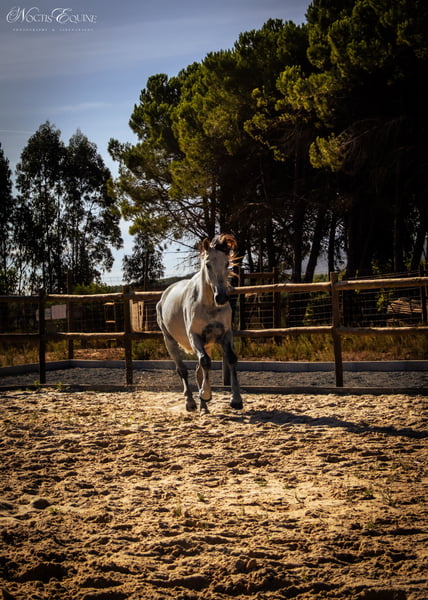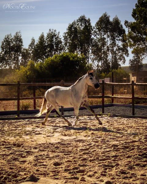 Orion VA ist ein charismatischer 7-jähriger APSL Lusitano Wallach. Wo immer er auch hingeht, wird er die Menschen um ihn herum mit seinem ausdrucksvollen Erscheinungsbild, seinem goldenen Glanz, seiner langen dunklen Mähne und seinem Schwanz beeindrucken. Er ist ein barocker Typ mit einer schönen kompakten Konformation. Er ist sehr brav, selbstbewusst und ruhig, hat Charakter, ist aber super ehrlich und fair. Er liebt es, mit dir zu arbeiten, er liebt Aufmerksamkeit und ist voller Energie. Er hat drei sehr korrekte und ausgewogene Gänge, einen weiten Schritt, einen bequemen Trab und einen super ausgewogenen, aufwärts gerichteten Galopp. Die Arbeit mit ihm ist ein wahres Vergnügen, er ist sehr sensibel und reagiert gut auf die Hilfen von Sitz und Beinen, super leicht in der Hand, nur das Gewicht der Zügel in deiner Hand. Er wird mit einem doppelt gebrochenen Wassertrense geritten und geht überall barfuß ohne Probleme. Er ist der ideale Partner für einen feinen Amateurreiter. Er beherrscht alle Seitengänge, Schulter herein und heraus, Übergänge vom Schritt zum Galopp, Gegenagalopp, beginnt mit fliegenden Wechseln und mit Übungen, die auf die höhere Schule der Versammlung abzielen. Wenn du einen vielseitigen Partner suchst, der Talent für klassische Dressur und Working Equitation hat, ist er das Pferd für dich. Über VA Lusitanos: Wir züchten unsere Pferde mit Sorgfalt, die Fohlen werden auf der Weide geboren, wachsen in der Herde auf, auf hügeligem Gelände, mit Bäumen, Sträuchern, offenen Flächen, Flüssen und einem kleinen See, sodass sie sich an verschiedene Umgebungen gewöhnen und Vertrauen gewinnen. Sie haben immer hochwertiges Heu und ihre Portion an Getreide und Mineralien zur Verfügung. Sie lernen viel gutes Sozialverhalten voneinander, von ihren Müttern und Tanten in der Herde, außerdem ist die tägliche Interaktion mit Menschen ein wichtiger Teil ihrer Ausbildung. Da wir sehr häufig mit unseren Pferden interagieren, entwickeln sie ein tiefes Vertrauen zu Menschen, was alle ihre Interaktionen mit Menschen und anderen Pferden erleichtert. Alle unsere Kunden bestätigen immer wieder, dass unsere Lusitanos in Bezug auf Selbstbewusstsein, Ruhe und Handhabung in allen Situationen herausragend sind. Da wir glauben, dass das Lusitano-Pferd Zeit benötigt, um zu reifen und ihre Knochen- und Muskelstruktur zu entwickeln, beginnen wir mit der Bewertung jedes einzelnen VA Lusitanos, wenn sie 4 Jahre alt sind. Orion begann seine Ausbildung, als er 4,5 Jahre alt war, zunächst an der Longe und am Hand, und seit er 5 Jahre alt ist, auch unter dem Sattel.