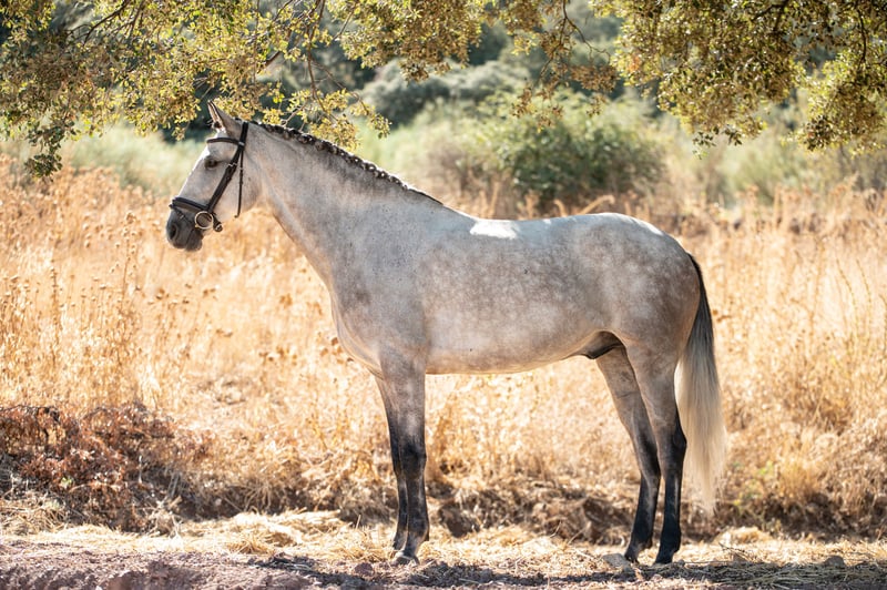 Mooie hooggebouwde Lusitano ruin met prachtige lijnen en veel potentieel voor dressuur. Patuska is La Donaira's meest gewaardeerde stammerrie, ze brengt betrouwbaar fijne hoofd- en halslijnen, elastische bewegingen en een geweldig karakter over. LD-hengst Iberio is een verbluffend mooie hengst met buitengewone bewegingen uit de Orphee RB-lijn (eerste Lusitano ooit die deelnam aan de Olympische dressuur in Barcelona 1992). Oxygeno toont elastische bewegingen zijn draf is actief met een goede techniek en hij toont al een verbazingwekkende verzamelingsvermogen in de overgangen. Heerlijke bergopwaartse galop en een goede werkhouding - uw volgende dressuurpaard!