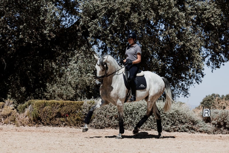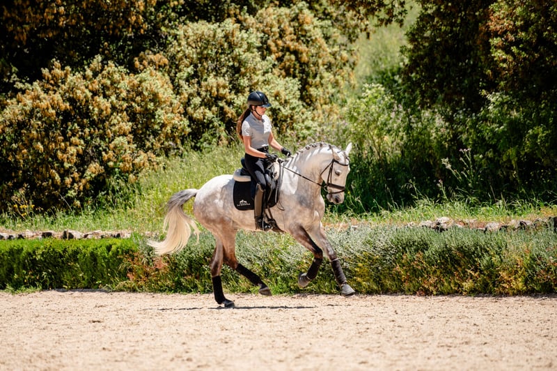 Beautiful tall build Lusitano gelding from exquisite lines and great potential for Dressage. Patuska is La Donaira's most prized foundation mare, she reliably transmits fine head and neck lines, elastic movements and great character. LD stallion Iberio is a stunningly beautiful with extraordinary movements from the Orphee RB line (first Lusitano ever to participate in Olympic Dressage in Barcelona 1992). Oxygeno shows elastic movements his trot is active with good technique and he is already showing amazing collectability in the transitions. Lovely uphill canter and good work ethics - your next Dressage horse!