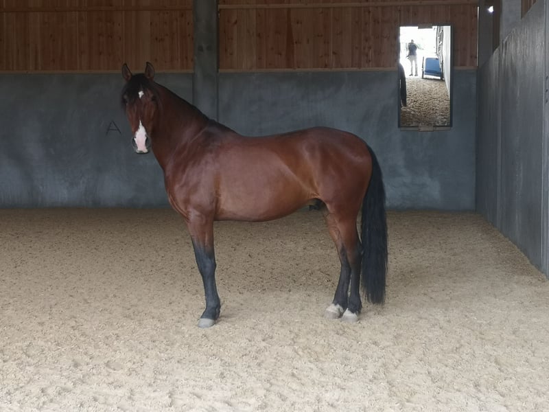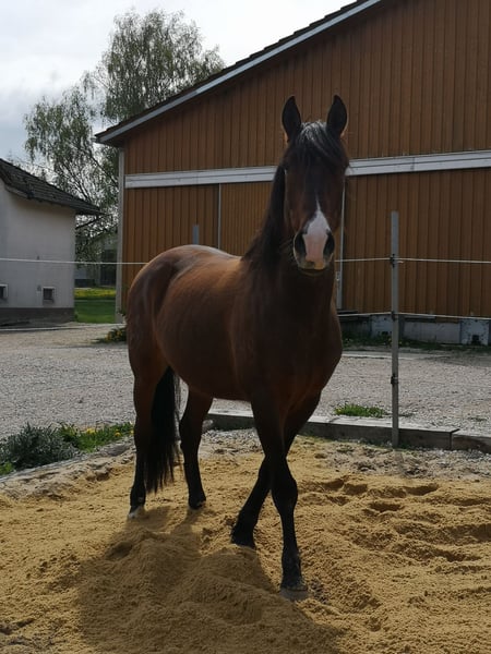 Nordeste ist ein wunderschöner, 8-jähriger, 1,50m kleiner Lusitano mit Bluebook vom ursprünglichen, barocken Typ der sich stark auf eine Person fixiert und mit dieser nach einer Kennenlernzeit neue Erfahrungen sammeln möchte. Er möchte regelmäßig gefordert und gefördert werden und das kann ich ihm als junge Mama einfach nicht bieten. Er wurde klassisch ausgebildet und ist sehr fein zu reiten, dabei möchte er stets gefallen und ist immer bemüht. Da ich die Energie die er mitbringt unterschätzt habe und auch mein Zeitmanagement nicht so lief wie ich mir das alles gedacht hatte, bin ich das letzte halbe Jahr nur noch selten geritten und habe ihn nur noch longiert. Wir haben verschiedene Kurse besucht von Freiarbeit über Gelassenheit und Trail, da wir an solchen Unternehmungen und der Abwechslung großen Spaß finden. Zum Ausgleich läuft er gerne neben dem Rad her und fühlt sich in der Natur rundum wohl und entspannt. Auf unserem landwirtschaftlichen Anwesen ist immer viel geboten sodass er Rinder, Hunde und Kinder kennt. Insbesondere landwirtschaftliche Maschinen jeglicher Art und Größe machen ihm nichts aus. Ich muss leider feststellen dass ich neben Familie, Kindern, Landwirtschaft und zwei älteren Pferden einfach zu wenig Zeit für Nordeste und sein feuriges Temperament finde. Deswegen trenne ich mich von ihm und hoffe das er einen neuen Besitzer bekommt der ihm die Zeit und Aufmerksamkeit schenkt die er verlangt. Bei uns lebt er im Offenstall mit 24h Heu und je nach Wetterlage täglichem Koppelgang. Er ist barhufer und regelmäßig geimpft, entwurmt und Zahnkontrolle gemacht. Prophylaktisch kommt einmal im Jahr die Chiropraktikerin. Im Preis inbegriffen sind ein Maßsattel der im Frühjahr 25 neu gekauft wurde und ein Semizaum mit passendem Gebiss.