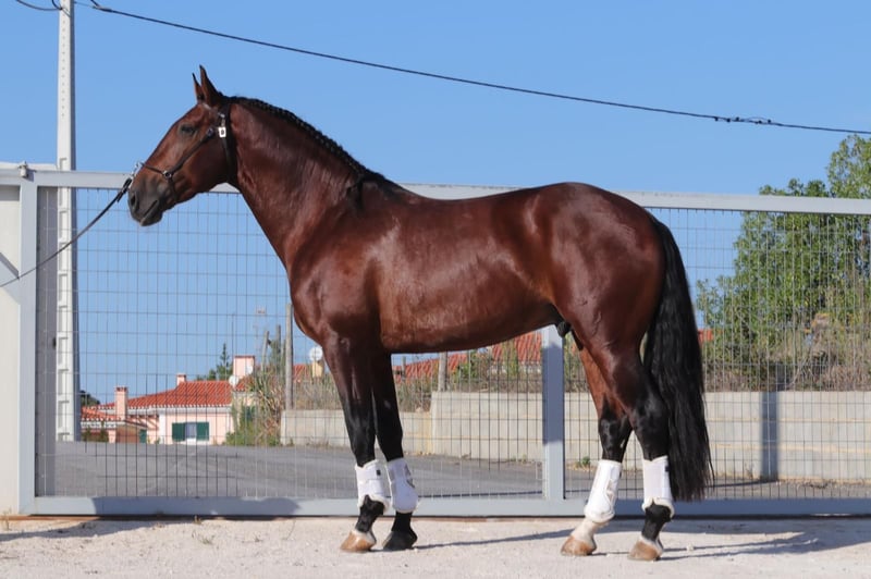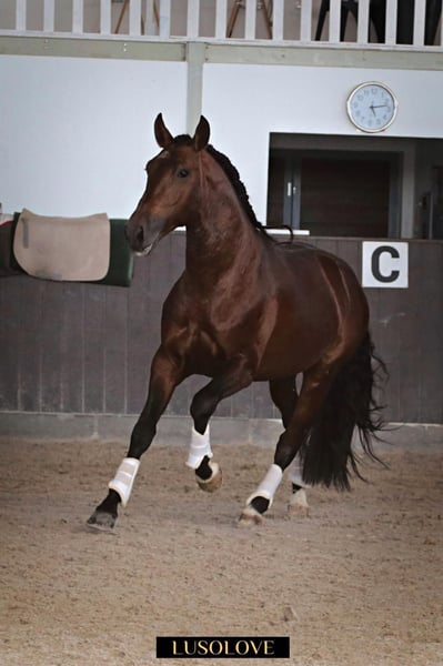 Se ofrece un caballo Lusitano de 2017, un potro de unos 1,71 m de altura, con carácter tranquilo y equilibrado. Es respetuoso y agradable en su trato, además de ser curioso y abierto. Su trabajo en doma es sencillo y fácil de montar, destacando por sus movimientos suaves y muy cómodos para el jinete. En el campo, se muestra seguro y confiable, tanto solo como en grupo, y participa sin problemas en concursos y entrenamientos fuera de casa. Un caballo confiable y dócil, adecuado tanto para jinetes de ocio con aspiraciones como para competidores. Incluso los jinetes que están retomando la actividad encontrarán en él un compañero honesto y agradable.