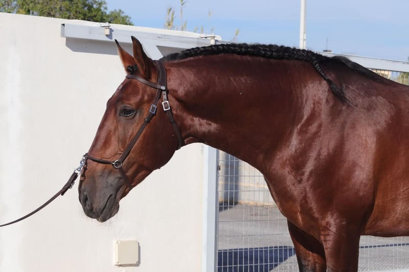 For sale: a 2017-born Lusitano gelding, approximately 16.1 hh, with a calm and balanced temperament. He is respectful and pleasant to handle, as well as curious and open-minded. His dressage work is straightforward and easy to ride, impressing with smooth, very seat-friendly movements. In the terrain, he proves to be confident and reliable, both alone and in a group, and handles competitions and off-site training sessions without any issues. A dependable, well-mannered horse suitable for ambitious leisure riders as well as competitive riders. Re-entrants will also find him to be an honest and agreeable partner.
