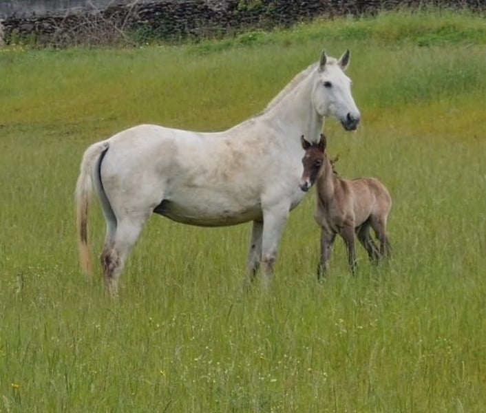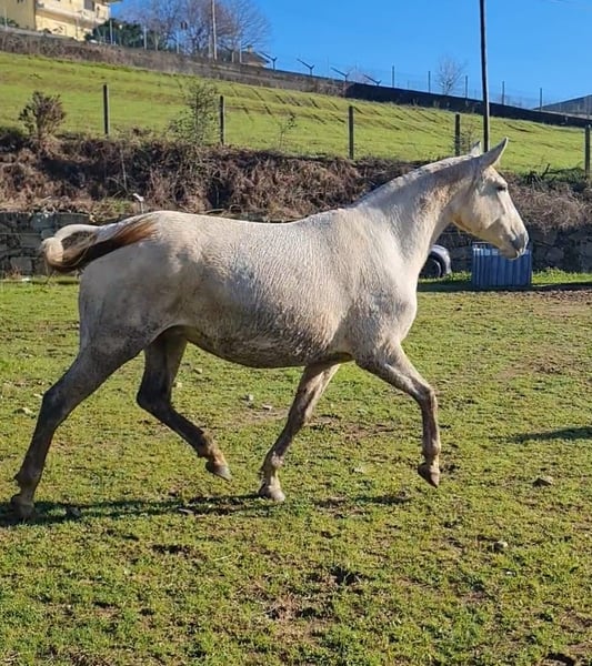Lusitano mare from top lineage (Zaire) licensed with 73 points Features: - Breed: Lusitano - Gender: Mare - Year of birth: 2016 - Color: Gray - Height: 162 cm For sale is the licensed breeding mare Malta Xisto Mano, an exceptional Lusitano mare that was excellently entered into the breeding book with 73 points. She impresses not only with her noble exterior but also through her already proven offspring, which are characterized by size, quality, and presence. Malta Xisto Mano has a height of approximately 1.62 m and comes from an excellent lineage: Her father is the renowned Zaire, a multiple award-winning stallion recognized by the APSL, whose offspring are known for their rideability, expression, and reliability in breeding. The mare was backed at a young age and always displayed a calm and cooperative demeanor. In recent years, she has dedicated herself entirely to motherhood, which she has fulfilled reliably and with great quality. Now it is time for her to find a new home – whether to continue in breeding or to be reactivated as a riding horse. Malta Xisto Mano combines typified Lusitano elegance, quality in breeding, and a pleasant temperament – a wonderful opportunity for breeders and riders alike. I would be happy to provide more pictures and videos upon request.