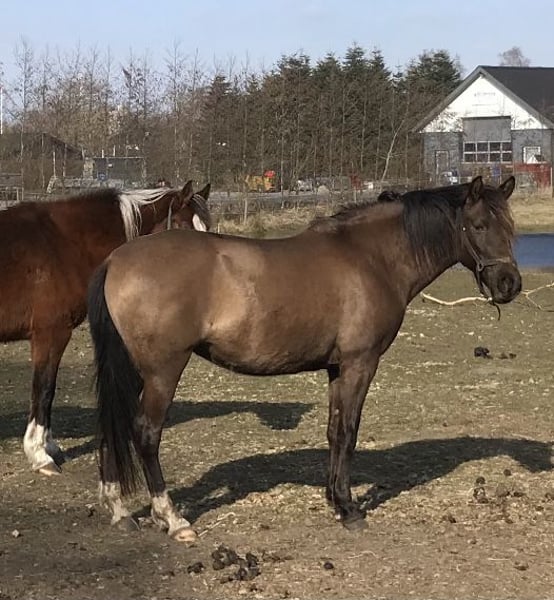 Imelda CL is primarily CN blood and old blood of that. Her father Jacto (73 point) was from 1991, and has the famous Martini, AD in the stallion linage. Har mother Gaiteira(76 points) was from 1988. She is after Quimono, Antonio Jorge da fonseca Alcobia, from 1974. She is piro positive. She was a rescue when we got her. She has never been ridden as she has a weak hind quarter. It is not affecting her on a daily basis, she is not lame just favor her right hind leg. She has been worked with liberty work in the past. But not for the last few years. If she is worked she could become a riding horse for light leisure. All subject to the work. The chestnut in the last picture is her son from 2023. Her color is EeaaCR dn1/dn1 (dorsal stripe/primitive markings) I have tried several times with frozen seamen, that is not working, she needs fresh seamen. That worked the first time. She is a good mother that takes care of her foal. She is not over protective and she allows you to come close. She is highly intelligent and she gives a clear yes/no.