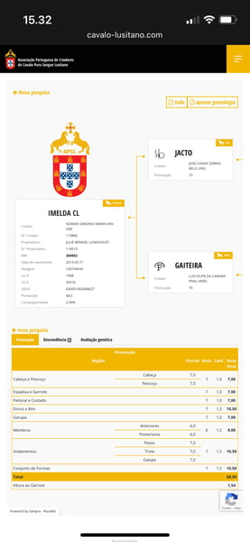 Imelda CL ist hauptsächlich CN-Blut und altes Blut davon. Ihr Vater Jacto (73 Punkte) stammt aus dem Jahr 1991 und hat die berühmte Martini, AD in der Hengstlinie. Ihre Mutter Gaiteira (76 Punkte) wurde 1988 geboren. Sie ist nach Quimono, Antonio Jorge da Fonseca Alcobia, aus dem Jahr 1974. Sie ist piro-positiv. Sie war eine Rettung, als wir sie bekommen haben. Sie wurde nie geritten, da sie eine schwache Hinterhand hat. Dies beeinträchtigt sie im Alltag nicht, sie ist nicht lahm, sondern bevorzugt ihr rechtes Hinterbein. Sie wurde in der Vergangenheit mit Freiarbeit gearbeitet, aber nicht in den letzten Jahren. Wenn sie gearbeitet wird, könnte sie ein Reitpferd für leichte Freizeitaktivitäten werden. Alles hängt von der Arbeit ab. Das Fuchsfohlen im letzten Bild ist ihr Sohn aus dem Jahr 2023. Ihre Farbe ist EeaaCR dn1/dn1 (dorsaler Streifen/primitive Abzeichen). Ich habe mehrmals mit gefrorenem Samen versucht, das funktioniert nicht, sie benötigt frisches Samen. Das hat beim ersten Mal funktioniert. Sie ist eine gute Mutter, die sich um ihr Fohlen kümmert. Sie ist nicht überprotectiv und lässt dich nah herankommen. Sie ist hochintelligent und gibt ein klares Ja/Nein.