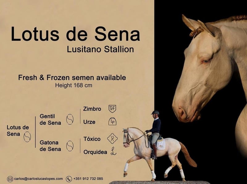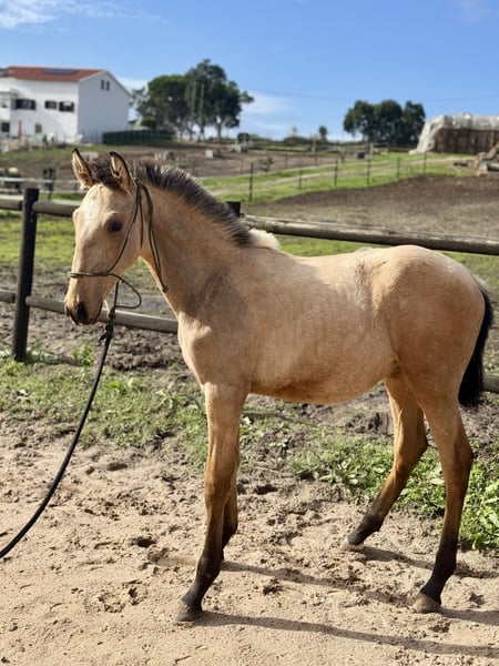 ✨ Lusitano Broodmare – pregnant by LOTUS DE SENA | guaranteed Buckskin | APSL 71.5 points | 16.1 hh JOANINHA Features: - Breed: Lusitano - Gender: Mare - Year of Birth: 2014 - Color: Brown - Height: 16.1 hh 🏅 Registered with APSL – 71.5 points 🤰 Pregnant by LOTUS DE SENA – guaranteed Buckskin ⸻ JOANINHA is an elegant, correctly conformed, and highly expressive Lusitano breeding mare, distinguished by her excellent pedigree and exceptionally friendly nature. She is officially licensed as a breeding mare with the APSL with 71.5 points and has already produced three high-quality foals. The mare is a dream to handle daily: ✨ Very human-oriented ✨ Calm, friendly, and reliable ✨ Extremely social within the herd ✨ A loving, experienced mother mare At age four, JOANINHA was lightly backed but then focused on breeding. Due to her temperament, further training as a riding horse would be possible at any time. ⸻ 🤰 Currently pregnant by LOTUS DE SENA – guaranteed Buckskin! JOANINHA is currently in foal to LOTUS DE SENA, a modern and striking Lusitano stallion. ➡️ 100% color certainty: the foal will be guaranteed Buckskin. 📅 Expected foaling date: May 17, 2026 ⸻ 📸 Additional: Photos of one of her previous foals To better assess the quality of her progeny, the listing includes pictures of one of her previous foals with the same pairing. This allows interested buyers to see the type of foal Joaninha passes on: ✔ Modern, correct, and typy ✔ Striking and expressive color ✔ Harmonious conformation ⸻ 💛 Character & Handling - Very human-oriented & friendly - Calm, composed, and absolutely reliable - Social within the herd - Excellent mother mare with great care ⸻ 🎯 Potential Uses - High-quality, reliable breeding mare - Ideal for colorful, modern Lusitano lines - Prospectively trainable as an riding horse 📞 Contact & Viewing JOANINHA can be visited by appointment. I look forward to serious inquiries and am happy to take the time for a personal conversation.