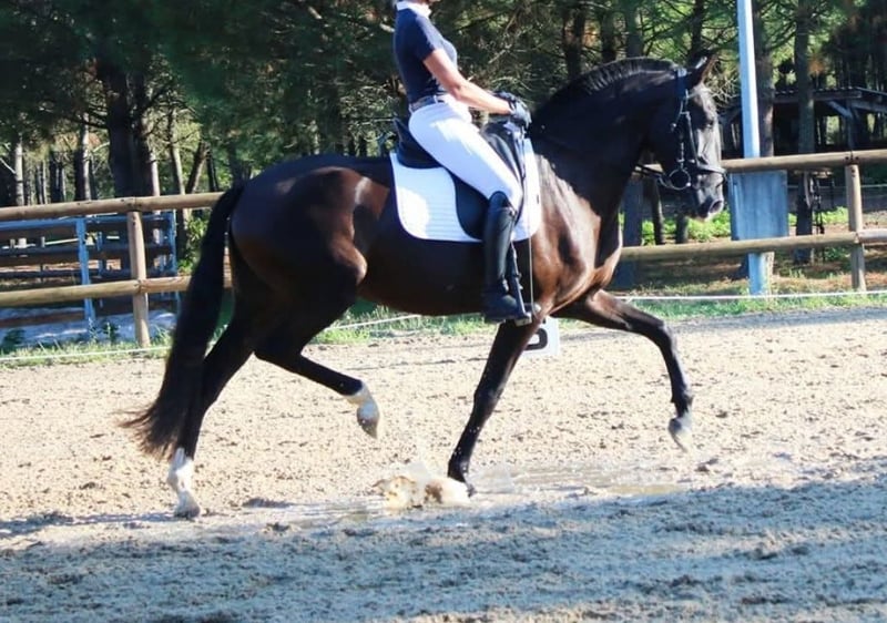 Ciao, Puledina Lusitana Nata il 19/05/2025 Attualmente vive in paddock, ha 6 mesi, non è ancora svezzata, ma potrà esserlo a breve, privilegiando uno svezzamento tardivo per il benessere di tutti. Puledina molto dolce, dal temperamento calmo e estremamente facile da gestire. Non morde né picchia. Molto attenta all’umano e alle sue richieste. Da due mesi esce all’aperto, non ha assolutamente problemi di socializzazione. Altezza adulta stimata 1,63/1,65 m. La madre misura 1,63 m, ha ottenuto 70 punti con un punteggio di 7 nei passi, trotto e galoppo. Il padre misura 1,70 m, ha ottenuto 72 punti. Un cavallo da dressage di alto livello, ha partecipato ai mondiali in Germania ottenendo 8 nei passi, trotto e galoppo. Entrambi i genitori hanno un carattere molto equilibrato e facile. Cavalli attivi nel lavoro, ma con una mente molto equilibrata. La puledrina, avendo ereditato i punti di forza dei genitori, possiede tutte le qualità che si cercano in un cavallo da sport. Data la sua origine, potrebbe anche diventare una perfetta riproduttrice di alta qualità.