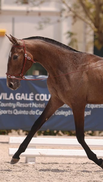 Name: Uliia Rasse: Vollblütiger Lusitano (PSL) Geschlecht: Stute Alter: 1 Jahr und 8 Monate Approximate Größe: 1,55 m Geburtsdatum: 04.10.2022 Zuchtbuch: APSL — NIN 392573 Farbe: Grau Standort: Coimbra, Portugal Abstammung & Genetik Uliia ist die Tochter von Lord Plus (RR 4★) vom Dressage Plus Zuchtbetrieb, mit 74,5 Punkten, bewährt im Dressursport. Die väterliche Linie umfasst Escorial (78 Punkte) und Elite Plus (76 Punkte). Die mütterliche Linie beinhaltet Açúcar do Pinheiro (74,5 Punkte) und Princesa (71 Punkte). Dressage Plus ist ein international anerkannter Zuchtbetrieb, bekannt für selektive Qualität und Erfolge im Spitzensport — unter anderem Zucht von Zonik Plus, Welt- und Europameister in Dressur. Dies erhöht Uliias genetischen Wert und zukünftiges Entwicklungspotenzial. Technische Beschreibung • Korrekte und ausgeglichene Konformation • Gute Bewegungsamplitude und Elastizität • Funktionales, neugieriges Temperament, leicht zu handhaben • Auf Außenhaltung gezogen, gesund, keine schlechten Angewohnheiten • Hervorragende Perspektive für Dressur oder Zucht • Aktuelle Größe ca. 1,55 m, wächst noch Unterlagen • Vollständiges APSL-Zuchtbuch • Verifizierte Abstammung • Mikrochip und Impfungen auf dem neuesten Stand