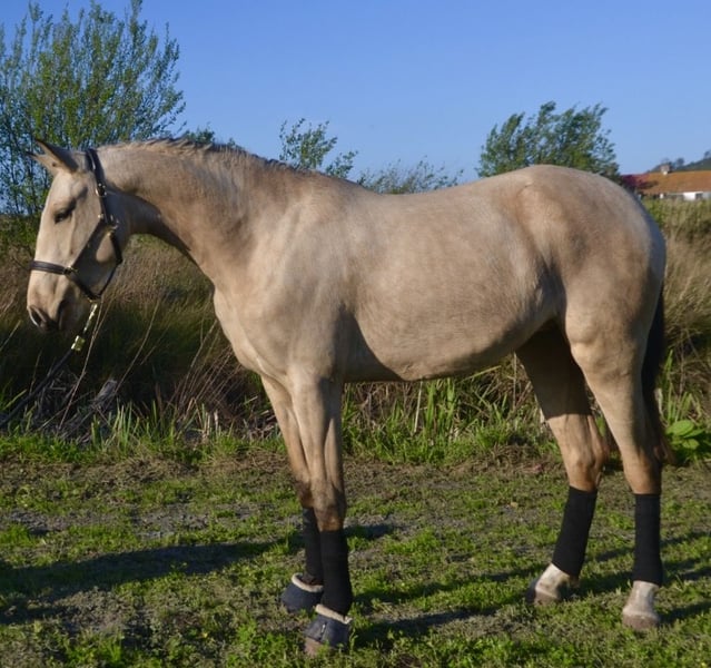 Sportliche Lusitano-Stute mit hervorragendem Potenzial Merkmale: - Rasse: Lusitano - Geschlecht: Stute - Geburtsjahr: 2023 - Farbe: Fuchs - Höhe: 1,61 m (derzeit) Diese beeindruckende Stute zeigt uns ihr gutes Wesen, da sie bereits an der Longe geritten wird. Zudem hat sie enormes Potenzial für die Dressur gezeigt. Derzeit wird sie kontinuierlich ausgebildet und zeigt stets Bereitschaft zur Mitarbeit und Lernbereitschaft. Auf Wunsch sende ich gerne weitere Bilder und Videos zu.