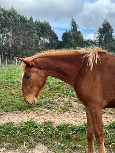 Typical young mare from top breeding – future horse for sport, leisure, and breeding Features: - Breed: Lusitano - Gender: Mare - Year of Birth: 2023 - Color: Chestnut - Height: Estimated final height 164 cm This impressive young mare is currently two years old and measures approximately 1.60 m at the moment. She is expected to reach a final height of about 1.64–1.65 m. Her appearance is extremely breed-typical – a real eye-catcher with a lot of charisma and an absolutely clear Lusitano type. She comes from the renowned breeding farm La Perla, known for quality, character, and conformation. Her full sister is also for sale and is currently being backed. She is already showing herself to be very well-behaved, cooperative, and unflappable under saddle – traits that this young mare also possesses, leading to the expectation that the start of her training will go just as smoothly. In terms of character, she impresses with a balanced, calm nature – an ideal partner for ambitious leisure riders, but also suitable for the sport sector. Due to her size, correct conformation, and full appearance, she is also absolutely interesting for breeding. With her clear gaits and her coolness, she has the best prerequisites to shine in every respect – whether in the dressage arena, in working equitation, or as a reliable leisure partner for the whole family. I would be happy to provide more pictures and videos upon request.