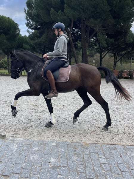 Serenata es una joven y elegante yegua lusitana de sangre pura, de color negro brillante, con una pequeña mancha blanca en la frente que recuerda a un copo de nieve. Gracias a su excelente estructura corporal, eclipsa a muchos sementales. Nació en nuestra finca (www.coudelaria-linda-oliveira.com) y ha disfrutado de su infancia y juventud en un grupo de manada, aprendiendo a la vez a relacionarse con las personas de manera cercana y afectuosa. Por ello, es una joven muy amable y sociable, que está en las primeras etapas de su carrera como caballo de doma. A los tres años y medio, ya está siendo montada, ha sido longada, trabajada en el suelo y recientemente ha comenzado a ser montada con suavidad. Nos impresiona por su afán de aprender y su disposición a cooperar. Es una verdadera joya que seguramente brillará, con una presencia imponente y destinada a ser una fiel compañera para su jinete. Por supuesto, todavía necesita tiempo en su entrenamiento, por lo que puede quedarse con nosotros para su formación básica. Ahora es una oportunidad de adquirir esta magnífica y elegante yegua lusitana de color negro, ya que no hay muchos caballos comparables. Su pedigrí resulta interesante también para la cría, ya que puede transmitir su codiciado y raro color negro en la raza lusitana. Su padre, Lidador OC, es un semental de 10 años, exitoso en el nivel de Gran Premio, de sangre pura y de origen noble. Su madre proviene de antiguas líneas de cría de toros de lidia. Sin duda, posee la valentía y la capacidad de recolección necesarias para la disciplina de la Working Equitation. Fue presentada con éxito a los dos años en el festival de yeguas jóvenes en Cascais. Para más vídeos e información, no dude en contactarnos por WhatsApp al +49 17644482124.