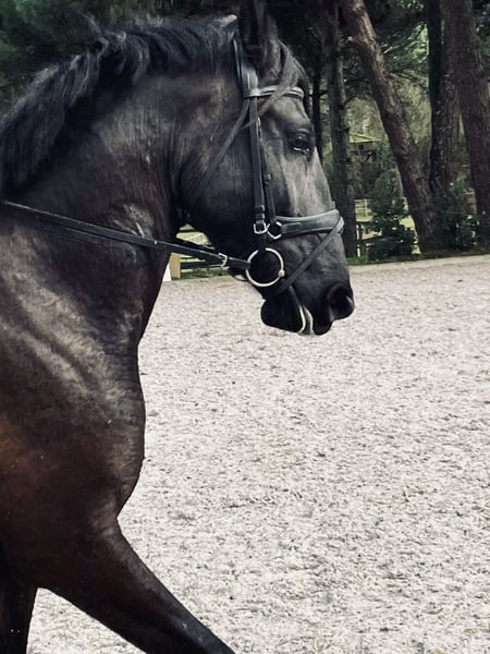 Serenata est une jeune jument lusitanienne de robe noire, au profil baroque, avec une petite tache blanche en forme de flocon de neige sur le front. Sa morphologie remarquable fait d’elle une étoile parmi ses congénères. Née dans notre élevage (www.coudelaria-linda-oliveira.com), elle a passé son enfance et sa jeunesse en troupeau, tout en apprenant à nouer des liens quotidiens avec l’humain. C’est une jeune demoiselle très affectueuse et proche de son cavalier, qui débute sa carrière en tant que cheval de selle. À l’âge de trois ans et demi, elle a été monté en licol, longée, travaillée en liberté et récemment doucement monté en selle. Son enthousiasme pour l’apprentissage et sa volonté de coopérer nous impressionnent. C’est une véritable perle qui, sans aucun doute, brillera de mille feux, avec une présence exceptionnelle, et qui sera une fidèle compagne pour son propriétaire. Bien entendu, elle nécessite encore du temps en formation, ce qui explique qu’elle puisse rester chez nous pour sa préparation de base. C’est une occasion unique d’acquérir cette magnifique jument lusitanienne noire, car peu de chevaux comparables existent. Son pedigree est intéressant pour la reproduction, et elle pourra transmettre sa couleur noire, rare chez les Lusitaniens. Son père, Lidador OC, est un étalon de 10 ans, performant en Grand Prix, de robe noire. Sa mère appartient à une lignée ancienne de taureaux de combat. Elle possède sans doute le courage et la capacité de collection nécessaires pour la Working Equitation. Elle a été présentée avec succès à l’âge de deux ans lors du festival des jeunes juments à Cascais. N’hésitez pas à nous demander plus de vidéos et d’informations par WhatsApp au +33 6 74 48 21 24.