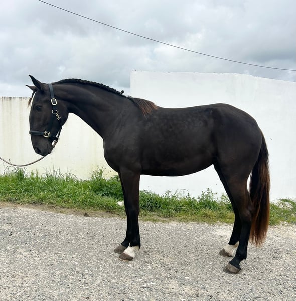 Typy mare with excellent character We offer an exceptional Lusitano mare for sale. Features: - Breed: Lusitano - Gender: Mare - Year of Birth: 2022 - Color: Black - Height: 161 cm, there will definitely be a few more centimeters This talented mare impresses with her elegant appearance and her balanced, loving nature. She has already gained initial experience on the lunge and shows promising potential for dressage. SAFIRA combines two of the most renowned bloodlines of the Lusitanos - the noble LA PERLA line and the powerful ORTIGÃO COSTA line. A combination that promises elegance, rideability, and charisma at the highest level. Currently, she is being continuously trained and always demonstrates a willingness to learn, cooperativeness, and readiness to perform. With her honest, people-oriented nature, SAFIRA is also suitable for ambitious leisure riders and sensitive beginners who desire a reliable and loving horse, despite her potential. The price will develop according to her training. Flawless X-ray images are available. I can gladly provide additional pictures and videos upon request.