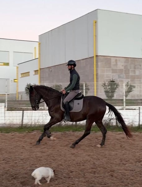 Jument typée avec un caractère exceptionnel Nous proposons à la vente une jument Lusitano exceptionnelle. Caractéristiques : - Race : Lusitano - Sexe : Jument - Année de naissance : 2022 - Couleur : Noir - Taille : 161 cm, elle devrait encore grandir de quelques centimètres Cette jument talentueuse se distingue par son apparence élégante et son caractère équilibré et affectueux. Elle a déjà acquis ses premières expériences en longe et montre des débuts prometteurs en dressage. SAFIRA réunit deux des lignées les plus connues des Lusitanos - la noble lignée LA PERLA et la puissante lignée ORTIGÃO COSTA. Une combinaison qui promet élégance, montabilité et charisme à un niveau élevé. Actuellement, elle est en formation continue et se montre toujours désireuse d'apprendre, coopérative et prête à fournir des efforts. Avec son caractère honnête et attaché aux humains, SAFIRA convient malgré son potentiel également aux cavaliers de loisir ambitieux et aux débutants sensibles qui souhaitent un cheval fiable et affectueux. Le prix évolue en fonction de sa formation. Des radiographies impeccables sont disponibles. Je peux vous envoyer d'autres photos et vidéos si vous êtes intéressé.
