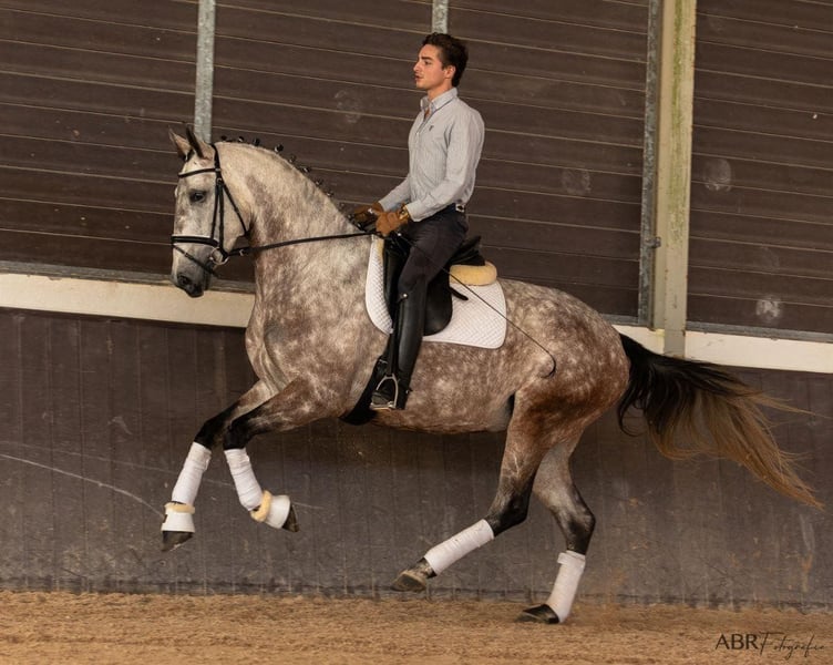 If uphill needs a picture… Spectacular 4yro piro free PSL mare from Equador MVL and approved with 71,5 points… She got an 8 for her walk. In the origins of this Lusitano mare you can find only big names. Her father is Equador MVL, out of Quo Vadis, who went to the olympic games. Her mother comes from Soberano, out of Hostil and we can also find here Riopele in the lines of her mother. 5 stallions with 4 or 5 stars recommendations. This is the pure essence of dressage blood and functionality. This young lady is a promise for the future. She is has actually 166cm. She moves spectacular, very good gaits and an amazing conformation. There are not many mares like this in the market. She is really a treasure. For dressage or breeding. Well basic ridden in all 3 gaits and here she shows her real qualities. Not becoming tired, super cooperative and fast learning with a lot of strength. Located in Portugal 🇵🇹