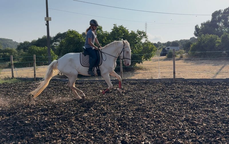 Grande, affascinante cavalla Lusitano con potenziale per la riproduzione e lo sport Caratteristiche: - Razza: Lusitano - Sesso: Fattrice - Anno di nascita: 2020 - Colore: Cremello - Altezza al garrese: 168 cm Questa impressionante fattrice unisce eleganza, grandezza e un carattere onesto. Con un'altezza di 1,68 m, appartiene alle rappresentanti particolarmente grandi della sua razza – un vero cavallo eccezionale e anche molto interessante dal punto di vista della riproduzione. Nella sua linea non ci sono cavalli grigi, ma solo animali di colore intenso – un vero punto di riferimento per gli allevatori interessati ai colori. È ben addestrata in tutti e tre i passi fondamentali, sempre attenta ai comandi e motivata nel lavoro. Conosce i movimenti laterali, il lavoro con i bastoni e piccoli salti sotto il cavaliere, ma si mostra anche nel salto libero su ostacoli più alti con molta visione e gioia. È anche familiare con il girare all'indietro, il lavoro a terra e il seguire libero. Vive senza ferro, in un paddock aperto con un'altra fattrice in un regime di 24/7. È sociale, amichevole e ben integrata, sia nel quotidiano che nella vita di gruppo. Veterinario, maneggiatura degli zoccoli, fisioterapia – affronta tutto con una calma e una disponibilità ammirevoli. Un vero cavallo affidabile con un temperamento equilibrato. Grazie alla sua buona discendenza, alla sua grandezza e alle sue capacità di movimento, è adatta sia per il dressage che per cavalieri ambiziosi di tempo libero e working equitation. Con il suo carattere socievole e voglia di imparare, è pronta per un nuovo compito e per una persona che la sostenga e la ami. Naturalmente, sarebbe anche una candidata interessante per la riproduzione, sia per la sua grandezza, la sua capacità di monta o per la sua trasmissione del colore. Un cavallo che fiorirà ulteriormente con la persona giusta. Posso inviare volentieri ulteriori foto e video se interessati.