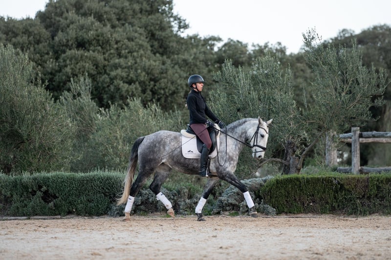Promising young mare from exquisite lines started under the saddle. Mother Duna is from Viheste and Perotesta. Father Jasmim Plus unites the Spartacus and the Cenoura lines - the most promising stallion in Portugal-Champion of the Champions 2018. Pitaya has 3 elastic gates and is a very charasmatic and confident young mare-with a lot of Go. Compact build she could be a good working equitation horse. This mare has a big heart, perfect for those looking to learn and enjoy the company of a loyal and graceful partner!
