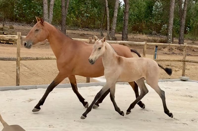 Su paso ancho y muy natural, su trot activo y su galope extremadamente armonioso y ascendente ya destacan desde potra, bailando junto a su madre. Actualmente se encuentra en el nivel de entrenamiento fundamental según el programa de Vale de Água (https://www.quintavaledeagua.com/index.php/va-lusitanos/breeding-development). Su respuesta calmada y segura a las ayudas de las piernas y el peso en la silla es una de sus mayores fortalezas. Su conformación naturalmente ascendente la convierte sin duda en una excelente compañera para la doma o la equitación de trabajo. Sobre VA Lusitanos: Criamos nuestros caballos con cuidado; los potros nacen en el campo, crecen en manada en terrenos ondulados, con árboles, arbustos, zonas abiertas, ríos y un pequeño lago, lo que les permite familiarizarse y confiar en diferentes tipos de entorno. Siempre disponen de heno de buena calidad y su ración de granos y minerales. Aprenden comportamientos sociales positivos de sus madres, tías y de la manada, además de la interacción social con otros caballos y la interacción diaria con humanos, que es una parte fundamental de su educación. Gracias a la interacción frecuente con nuestros caballos, desarrollan una profunda confianza en las personas, lo que facilita todas sus interacciones tanto con humanos como con otros caballos. Nuestros clientes confirman una y otra vez que nuestros Lusitanos destacan por su confianza, tranquilidad y facilidad de manejo en cualquier situación. Creemos que el caballo lusitano necesita tiempo para madurar y desarrollar su estructura ósea y muscular, por lo que evaluamos a cada VA Lusitano a partir de los 4 años de edad. Pipa VA comenzó su entrenamiento a los 5 años, primero en la cuerda y en mano, y desde hace un año también bajo la silla. Actualmente no está inscrita como yegua de cría, pero consideramos que podría ser una excelente madre y yegua reproductora. Disponemos de diferentes VA Lusitanos en distintas edades. Caballos jóvenes, entrenados en mano y bajo la silla. Puedes consultar una visión general de nuestros lusitanos en nuestra página web. Además, ofrecemos alojamientos de alta calidad para nuestros clientes. Cuando compras un caballo con nosotros, tu estancia en uno de nuestros lujosos alojamientos es gratuita (máximo 5 noches). https://www.quintavaledeagua.com