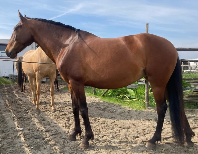 Lusitanian mare Nouga is reliable and enjoys working together with her partner. I am looking for someone for her who is interested in Natural Horsemanship, classical, or academic dressage. Nouga is also very suitable for Working Equitation or cattle work. In 2022, she was approved as a broodmare and has not been covered before. She is accustomed to heavy traffic, waving banners, and all kinds of stimuli. She is up to date with osteopath visits, feed measurements, vaccinations, and other health care. She is social with other horses but not suitable as the lead mare of a herd. Contact for more information or videos: +31 646 107 255
