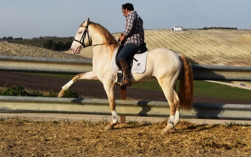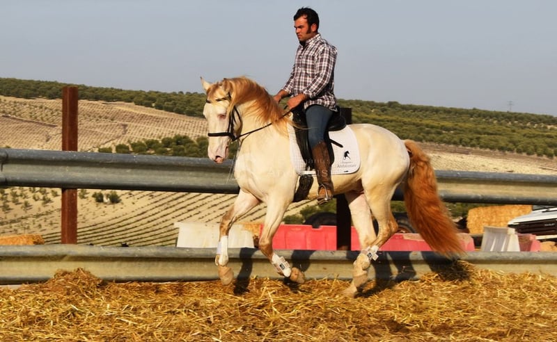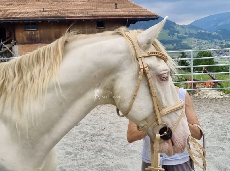 lieber Charakter, menschenbezogen, in den Grundgangarten geritten, Seitengänge, Spanischer Schritt, Gelände, Feria, Romeria, Rocio, spezielle Farbe, gute Bewegungen, Standort Schweiz www.elegante-andalusier.com