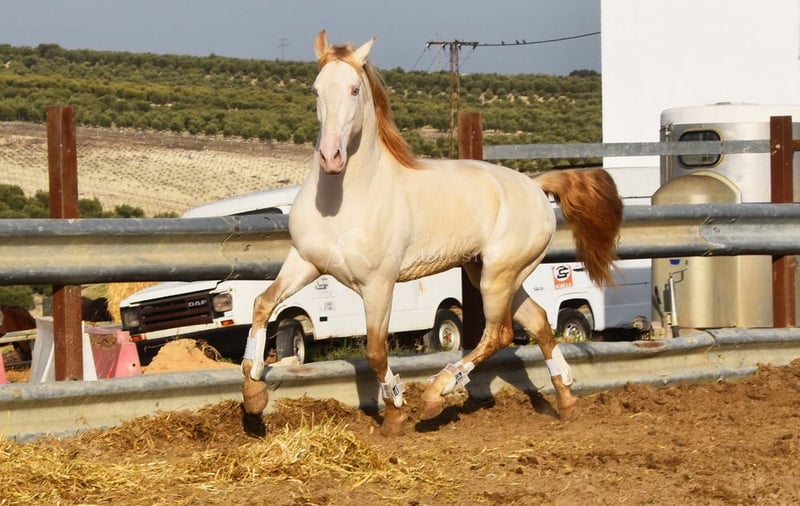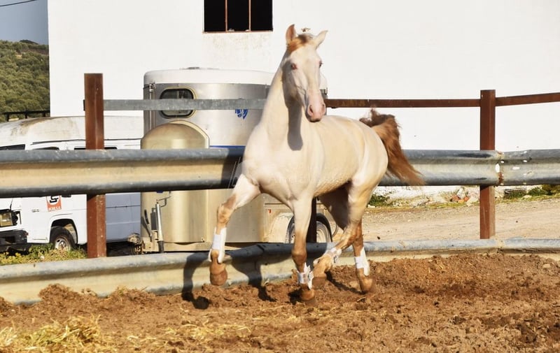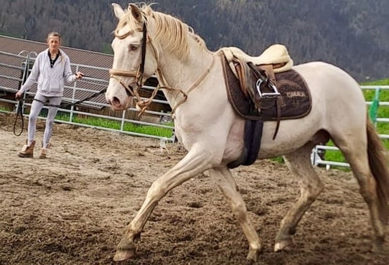 Gentile castrone Lusitano perlino, cavallo da famiglia, in Svizzera.