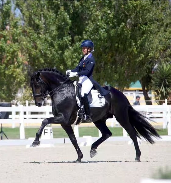lack GP schoolmaster Lusitano This is a spectacular 9yro Lusitano stallion with 162cm, competed in 2024 in small tour and won the silver medal in the Portuguese championships This year he competed already in some Inter A. A horse to go directly into high level competitions, perfect for an ambitious amateur or professional rider. Amazing mindset, top character, expressive movements and doing an amazing piaffe/passage. Fantastic opportunity for a top competition Lusitano! You want know more about this black beauty? Send me a PM or whatsapp 00491786997334. Jasmin from Top-Lusitanos