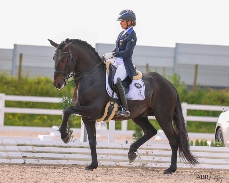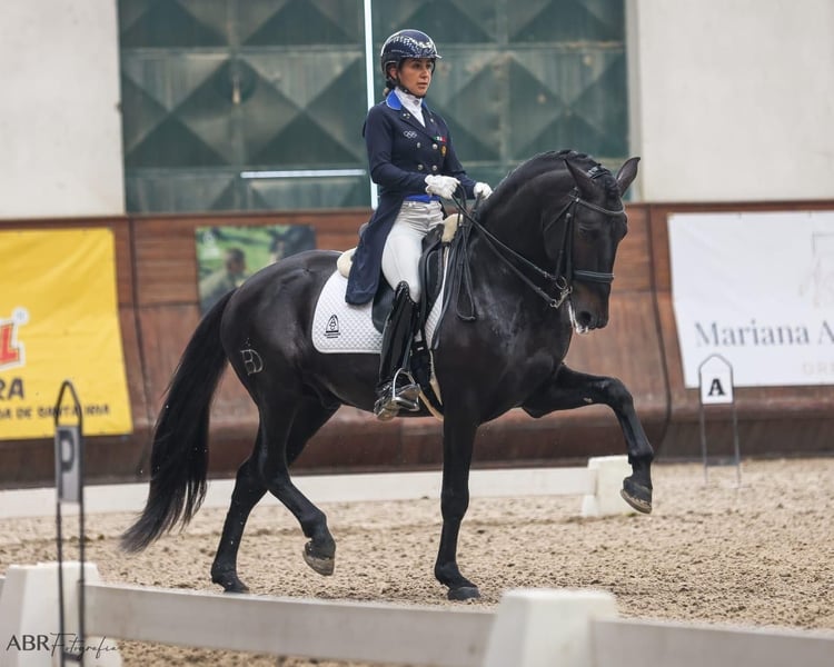 black GP schoolmaster Lusitano This is a spectacular 9-year-old Lusitano stallion standing at 162cm, who competed in 2024 in the small tour and won the silver medal at the Portuguese championships. This year, he has already competed in some Inter A. A horse ready to go directly into high-level competitions, perfect for an ambitious amateur or professional rider. Amazing mindset, top character, expressive movements, and performing an incredible piaffe/passage. Fantastic opportunity for a top competition Lusitano! Do you want to know more about this black beauty? Send me a PM or WhatsApp at 00491786997334. Jasmin from Top-Lusitanos