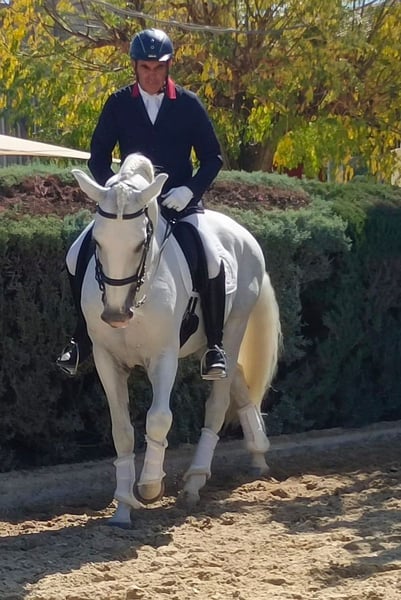 **Verkaufsanzeige: Eleganter Lusitano Hengst zu verkaufen** Wir bieten einen wunderschönen Lusitano Hengst zum Verkauf an, der durch seine Eleganz und sein beeindruckendes Auftreten besticht. - **Rasse:** Lusitano - **Geschlecht:** Hengst - **Geburtsjahr:** 2013 - **Farbe:** Schimmel - **Stockmaß:** 165 cm - **Ausbildungsstand:** Dressur Dieser charmante Hengst überzeugt nicht nur mit seinem edlen Erscheinungsbild, sondern auch mit seinem Talent und seiner Leidenschaft für die Dressur. Er zeigt sich stets motiviert und lernwillig, was ihn zu einem idealen Partner für ambitionierte Reiter macht. Der beeindruckende Schimmel ist sehr leichtrittig und kann auch von Kindern geritten werden oder als Lehrpferd dienen. Er hat aktuell beim Großen Preis von Andalusien teilgenommen. Wenn Sie auf der Suche nach einem Pferd sind, das sowohl im Viereck als auch im Umgang Freude bereitet, dann ist dieser Lusitano genau das Richtige für Sie. Bei Interesse freuen wir uns auf Ihre Nachricht und stehen für weitere Informationen und Besichtigungstermine gerne zur Verfügung.