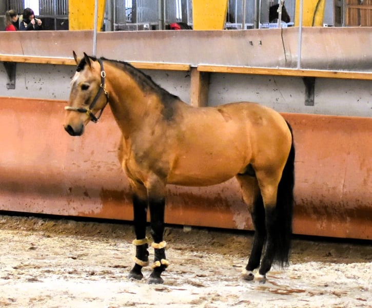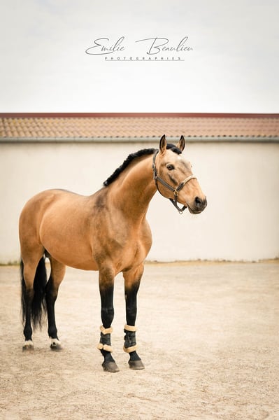 Lusitano, stallion, son of Escorial born in 2013 at Luis Bastos breed farm, scored 71.5 , Isabelle coat color.- 1.66 m, Fantastic breeding stallion, ideal for bringing in good blood, 3 excellent gaits and color. Red factor E/e Agouti A/A Cream N/Cr Pearl N/N Silver N/N Dun nd1/nd2 Champagne N/N Gray ABSENT His semen freezes very well - spermogram available on request - Semen available worldwide - he has 24 offspring registered in the Portuguese studbook and as many in Luso-Warmblood crossbreeding in France - Due to the quality of his gaits and conformation, Imperador has been approved for breeding in CDF (Cheval de Dressage Francais - French Luso-Warmblood). Lusitanien, étalon, fils d'Escorial né en 2013, à l'élevage Luis Bastos - ponctué 71.5 , de robe Isabelle.- 1,66 m, Fantastique étalon d’élevage, idéal pour apporter du bon sang, 3 excellentes allures et de la couleur Red factor E/e Agouti A/A Cream N/Cr Pearl N/N Silver N/N Dun nd1/nd2 Champagne N/N Gray ABSENT Sa semence congèle très bien - spermogramme sur demande - semence disponible pour le monde entier - il a 24 produits inscrits au studbook portugais et autant en croisement luso-warmblood en France - De par la quaité de ses allures et sa conformation, Imperador a été approuvé pour produire en CDF (Cheval de Dressage Francais - French Luso-warmblood)
