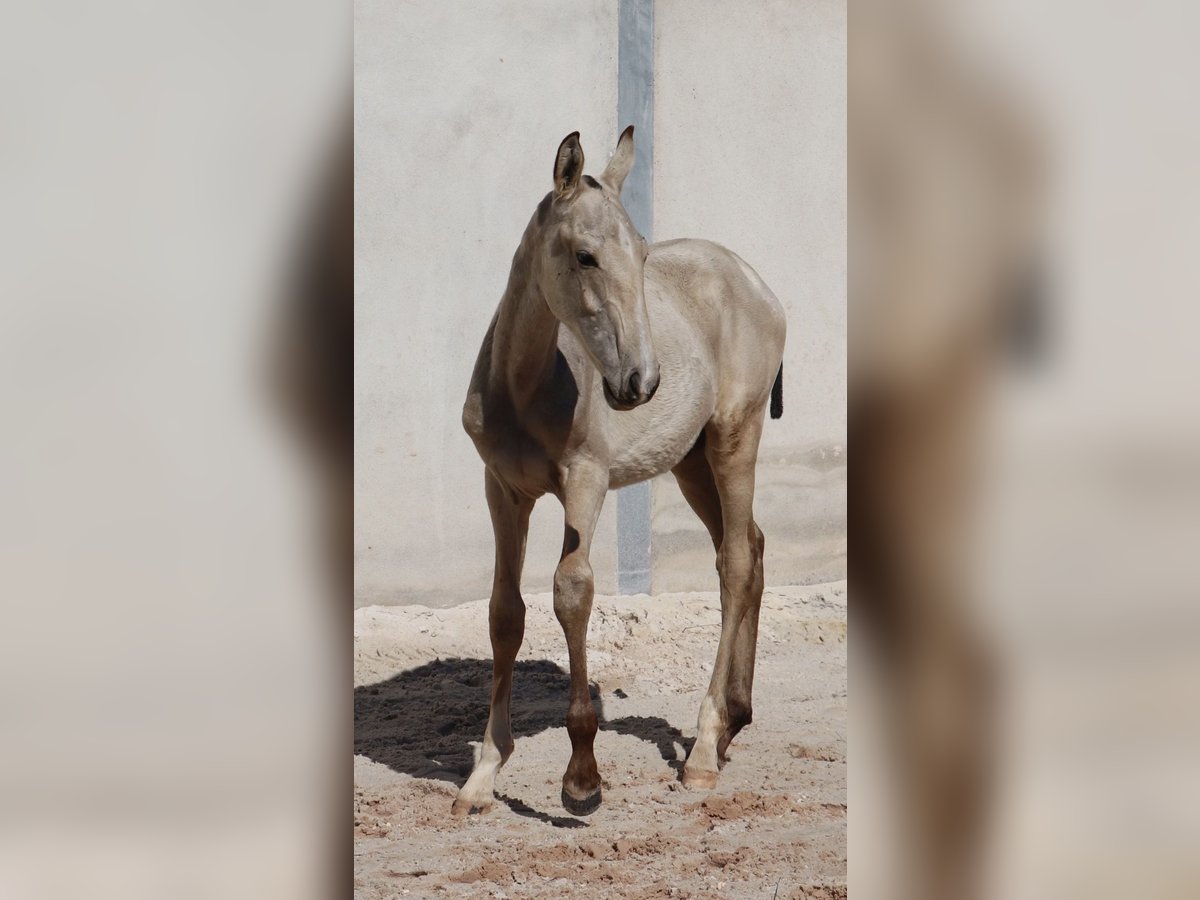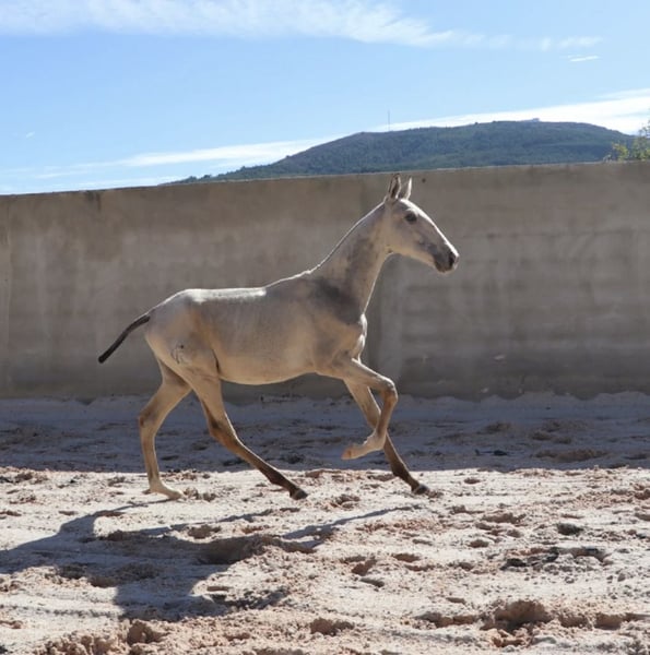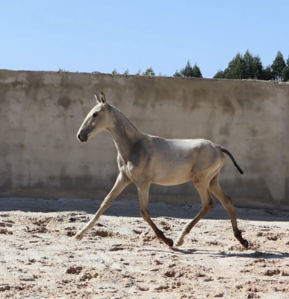 VALETE – Bright Buckskin Foal with Outstanding Lineage Features: - Breed: Lusitano - Sex: Colt - Year of Birth: 2025 - Color: Buckskin - Approximate Final Height: 16.1 hh Sire: ADÁGIO • Dam: High-licensed • Genetic tested ⸻ 🌟 Exceptional Conformation & Genetics VALETE is a well-built Buckskin colt born in 2025, with confirmed genetic color markers. His shiny coat and harmonious proportions already make him a striking eye-catcher. - Buckskin – genetically tested - Strong build with excellent limbs - Balanced, correct conformation ⸻ 🧬 Premium Pedigree Sire: ADÁGIO – successful internationally in Working Equitation and Bullfighting, with a clear mind, excellent rideability, and remarkable nerves. Dam: correctly conformed, high-licensed, especially calm and willing to perform. This pairing guarantees a clear-headed nature, ideal conditions for sport and leisure, and a high talent for Working Equitation. ⸻ 🧠 Character & Upbringing VALETE already shows himself as a particularly calm, curious, and well-mannered young stallion. - Easy to handle and approach - Displays a confident, unshakable character - Lives naturally in a herd on the pasture - Familiar with various ground surfaces, growing up robust and healthy ⸻ 🏅 Future Potential With his pedigree, conformation, and temperament, VALETE has everything needed to become a high-performance sport partner or a solid, resilient leisure horse in the future. ⸻ 📩 Contact I am happy to send additional photos and videos or answer any questions. VALETE is available for reservation immediately.