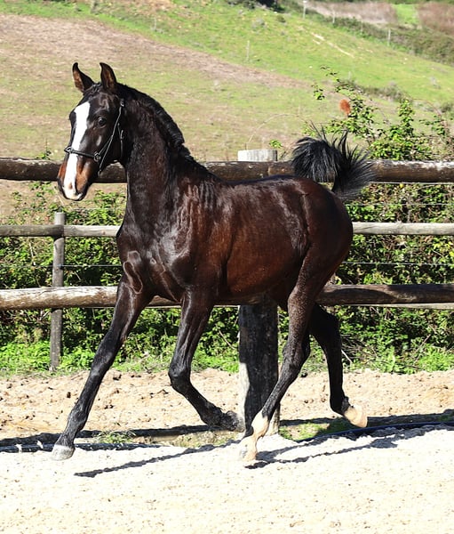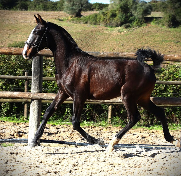 Die Abstammung luegt nicht! Sein Vater ist der erfolgreiche Poderoso Plus von Rubi AR. und das sieht man. Er ist ein Ebenbild von Poderoso,der sehr gut in der Dressur geht .Er ist ein fuerchtloeses Kerlchen,neugierig und dem Menschen zugewandt. Er kennt das Fohlen ABC.. Es ist ein Fohlen, bei dem sich die Aufzucht definitiv lohnt. Poderosos Zuechter ist DER TOPZUECHTER PORTUGALS, auch der Zuechter von Zonik plus,dem derzeit besten Dressurpferd der Welt.