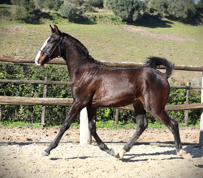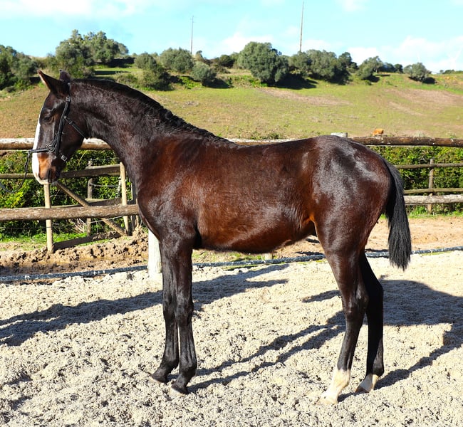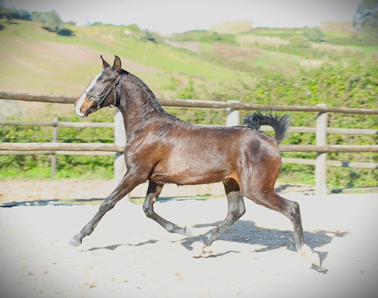 His pedigree doesn’t lie! His sire is the successful Poderoso Plus by Rubi AR, and it shows. He is a mirror image of Poderoso, who performs very well in dressage. He is a fearless little guy, curious and very human-oriented. He is familiar with the foal basics. This is a foal whose upbringing is definitely worth it. Poderoso’s breeder is Portugal’s top breeder, also responsible for Zonik Plus, currently the best dressage horse in the world.