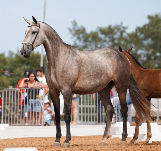 El hermoso Unique cumplirá 2 años en abril y crece en un terreno de 7.000 m² junto a otros potros. Ahora está listo para encontrar un nuevo hogar (puede quedarse en la finca a costa del propietario durante la crianza). Se estima que alcanzará una altura de aproximadamente 1,65 m, con un cuerpo fuerte y robusto, y una expresión encantadora. Sabe perfectamente cómo presentarse y le gusta hacerlo con mucho gusto. La línea Lusitana Andrade pertenece a las líneas clásicas e influyentes en la cría de Lusitanos, fundada por Ruy d'Andrade. Los Lusitanos Andrade son conocidos por su fuerza, funcionalidad y carácter equilibrado, a menudo con un mayor porcentaje de sangre Cartujana española en comparación con otras líneas. Equilibrados: Se consideran más tranquilos y serenos en comparación con los caballos Veiga, que suelen ser más "calientes". Dispuestos al trabajo: A pesar de su calma, son rápidos y con gran rendimiento en tareas como la tauromaquia o la Working Equitation. Sensibles: Son delicados con las ayudas y muy dispuestos al trabajo.