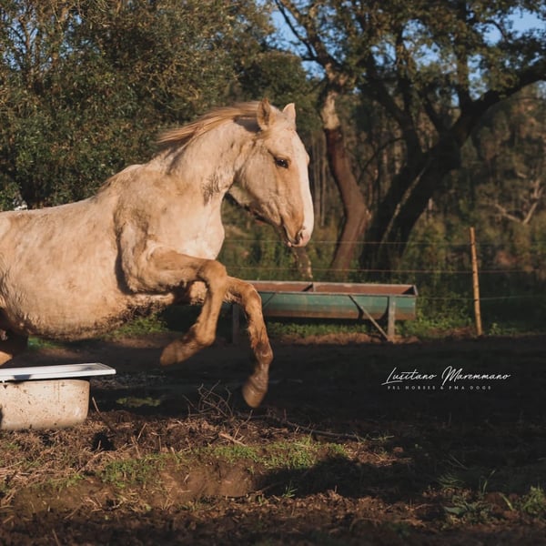 Outstanding stallion with a unique look Characteristics: - Breed: Lusitano - Sex: Stallion - Year of birth: 2024 - Color: Palomino - Height: Final height estimated 165 cm We are offering an impressive Lusitano stallion for sale that was born in 2024. This young Palomino not only impresses with his extraordinary beauty, but also with his potential as a show horse. This is also confirmed by his half-brother Fuego by Clémence Faivre. With a height of 165 cm, he presents an imposing appearance and promises a promising future in the show arena. His elegant appearance and friendly nature make him an ideal candidate for ambitious riders and breeders looking for a horse with exceptional potential. The stallion is already showing promising signs and is sure to turn heads at any event. His parents can be seen in the last pictures. I can send you more pictures and videos if you are interested.