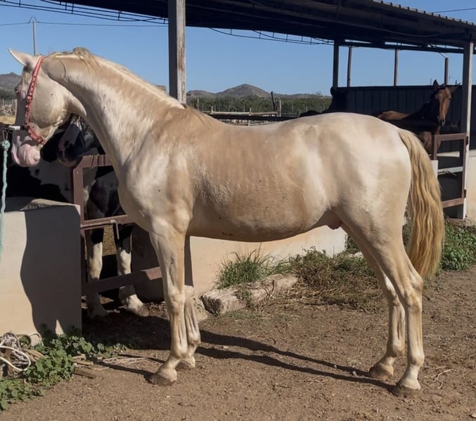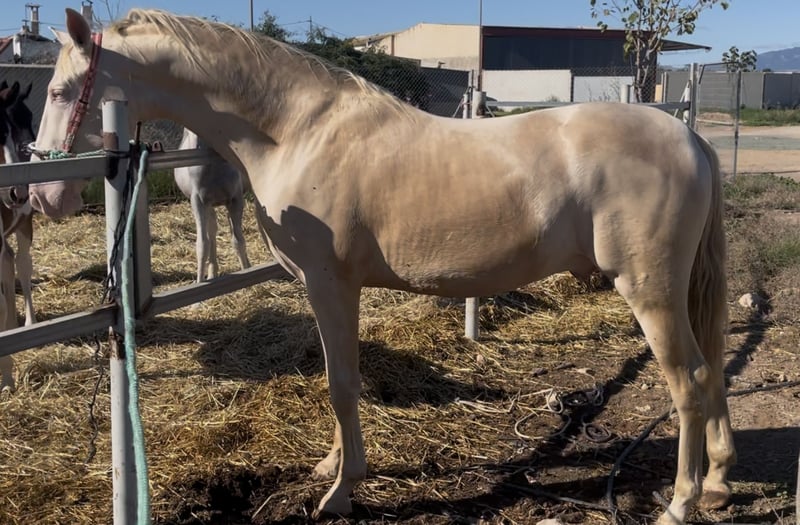 Potro Cremello con algo más de 2 años y más de 1,65 . Mucho hueso la cara ligeramente acarnerada Potro ideal para cualquier disciplina y una capa muy llamativa