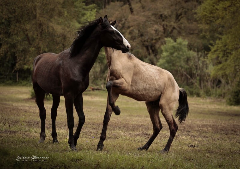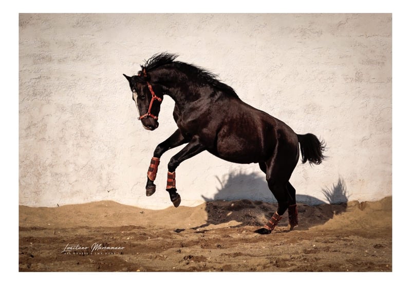 Impressive Lusitano warmblood stallion - Breed: Lusitano - Sex: Stallion - Year of birth: 2023 - Color: black - Height: 170 cm, final height estimated, currently 160 cm We are offering an impressive Lusitano warmblood stallion from the year of birth 2023 for sale. This magnificent black stallion not only impresses with his noble appearance, but also with his potential for dressage. Special lines such as Weltmeyer and MIAGUI DE CAIS combined in one horse. This young stallion already shows outstanding movements and a natural elegance that makes him an ideal partner for ambitious dressage riders. His friendly and attentive nature make him a great partner. He is currently being reared according to his age. I can send you more pictures and videos if you are interested.