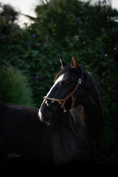 Impresionante semental lusitano de sangre caliente - Raza: Lusitano - Sexo: Semental - Año de nacimiento: 2023 - Color: negro - Altura: 170 cm, altura final estimada, actualmente 160 cm Ponemos a la venta un impresionante semental Lusitano warmblood del año de nacimiento 2023. Este magnífico semental negro no sólo impresiona por su noble aspecto, sino también por su potencial para la doma. Lineas especiales como Weltmeyer y MIAGUI DE CAIS combinadas en un solo caballo. Este joven semental ya muestra unos movimientos excepcionales y una elegancia natural que lo convierten en un compañero ideal para jinetes de doma ambiciosos. Su carácter amistoso y atento hacen de él un gran compañero. Actualmente está siendo criado de acuerdo con su edad. Puedo enviarle más fotos y vídeos si está interesado.
