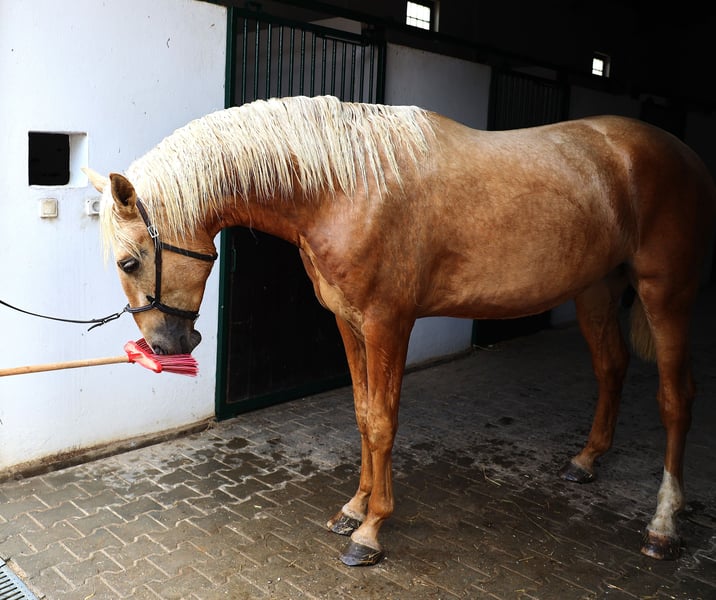Top Gun SR es de mi propia cría y también está creciendo aquí en mi Coudelaria SR, al aire libre, en el pasto, en el grupo, por supuesto con el mejor alimento de cría dos veces al día, controles regulares de herrador. Definitivamente es el mejor potro que he criado en los últimos años. Grande, conformacion correcta, bueno para manejar, aires correctos. Ya ha sido exhibido con éxito en mano una vez, por lo que sabe viajar, cargar, establos desconocidos, recintos feriales, etc.
