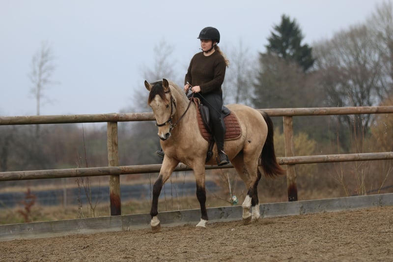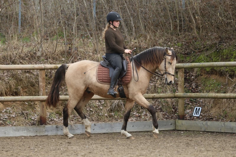 Shai ist ein 4 jähriger Hengst mit einem derzeitigen Stockmaß von 153cm. Er hat ein ziemlich kräftiges Exterieur und es wird da sicherlich noch einiges kommen. Wir haben ihn im Winter langsam angefangen anzureiten und er war zu jederzeit ein sehr ehrliches Pferd. Jetzt hat er sogar schon an zwei Seminaren teilgenommen und dieses auch trotz vieler fremd Pferde sehr gut und souverän gemeistert. Ich denke mir, dass er ein tolles Working Equitation Pferd werden wird, da er absolut unerschrocken ist, schnell und wendig ist und Spaß an Aufgaben hat. Für weitere Fragen kontaktiert mich gerne. Videos folgen in Kürze